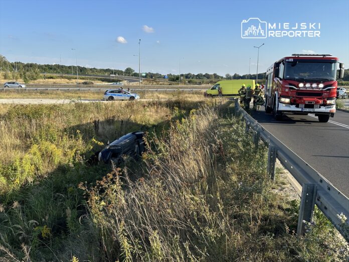Przy trasie S8 auto wypadło z drogi i dachowało. Kierująca nie zauważyła zakrętu?