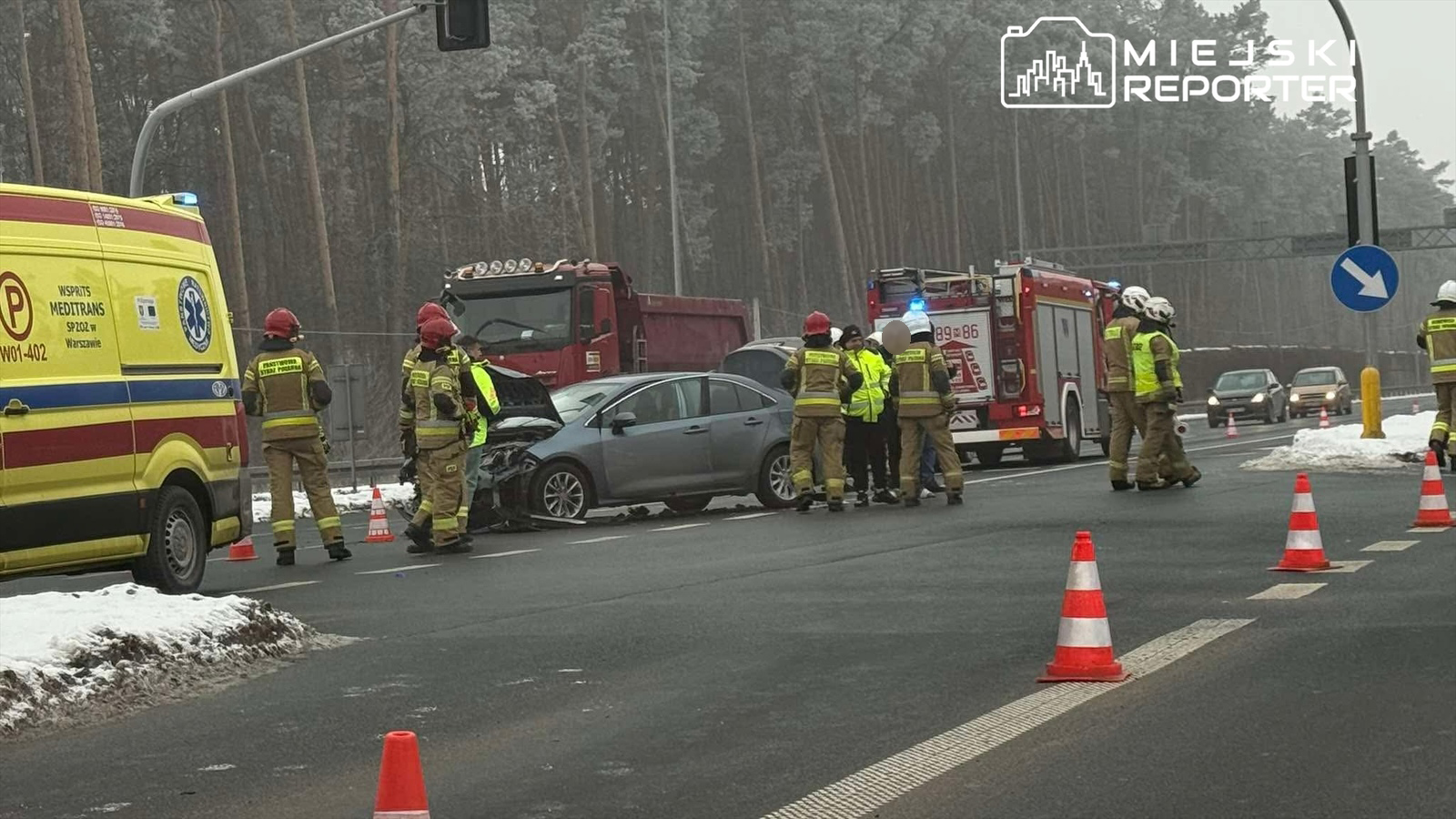 W środę 7 stycznia około południa na skrzyżowaniu Alei Krakowskiej i ul. Braci Leśnej w Sękocinie Starym (powiat pruszkowski) doszło do zderzenia osobowej Toyoty z busem marki Ford. Poszkodowana została pasażerka Toyoty, którą zespół ratownictwa medycznego przetransportował do szpitala, a na miejscu pracowały służby, w tym straż pożarna i policja.