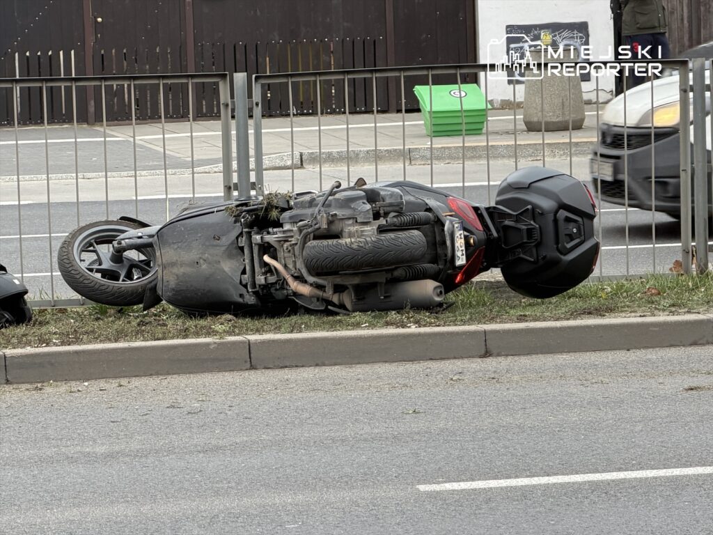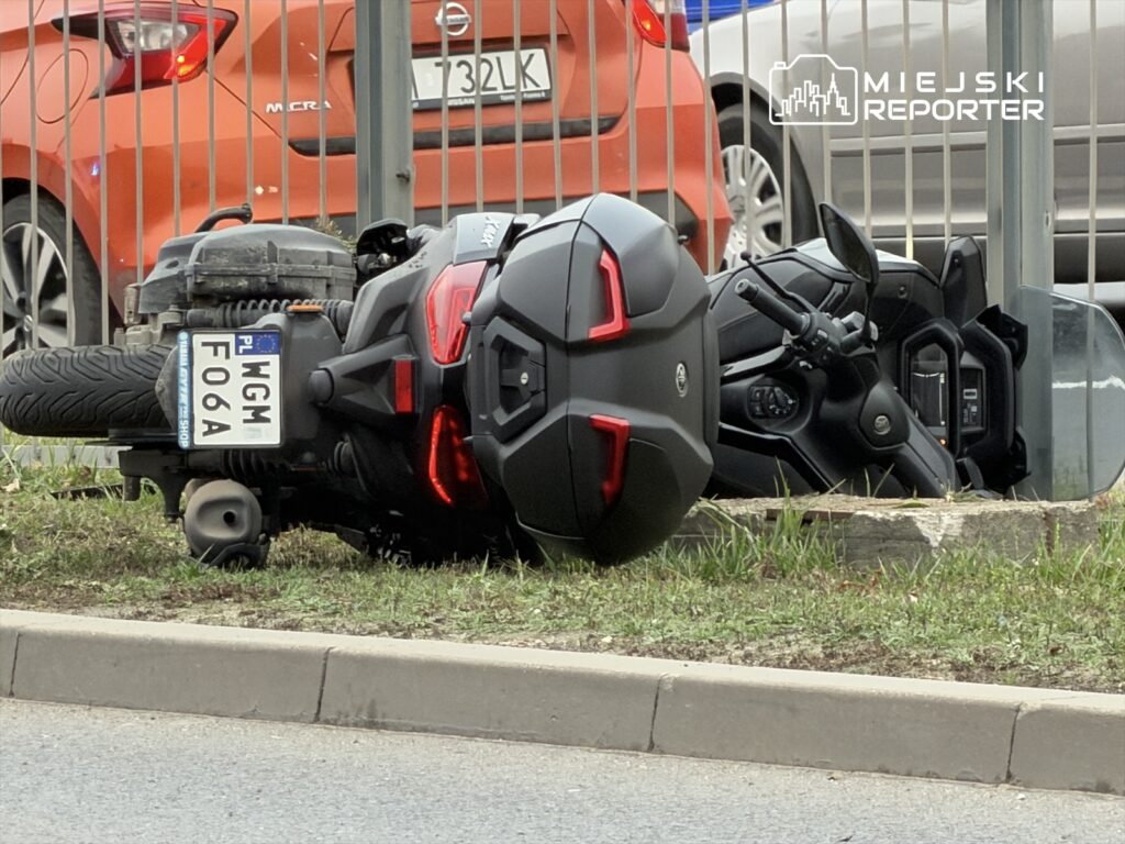Kierujący motocyklem został przetransportowany do szpitala z urazem klatki piersiowej. Na miejscu pracowała policja, która prowadziła dalsze czynności i zabezpieczała pojazd.