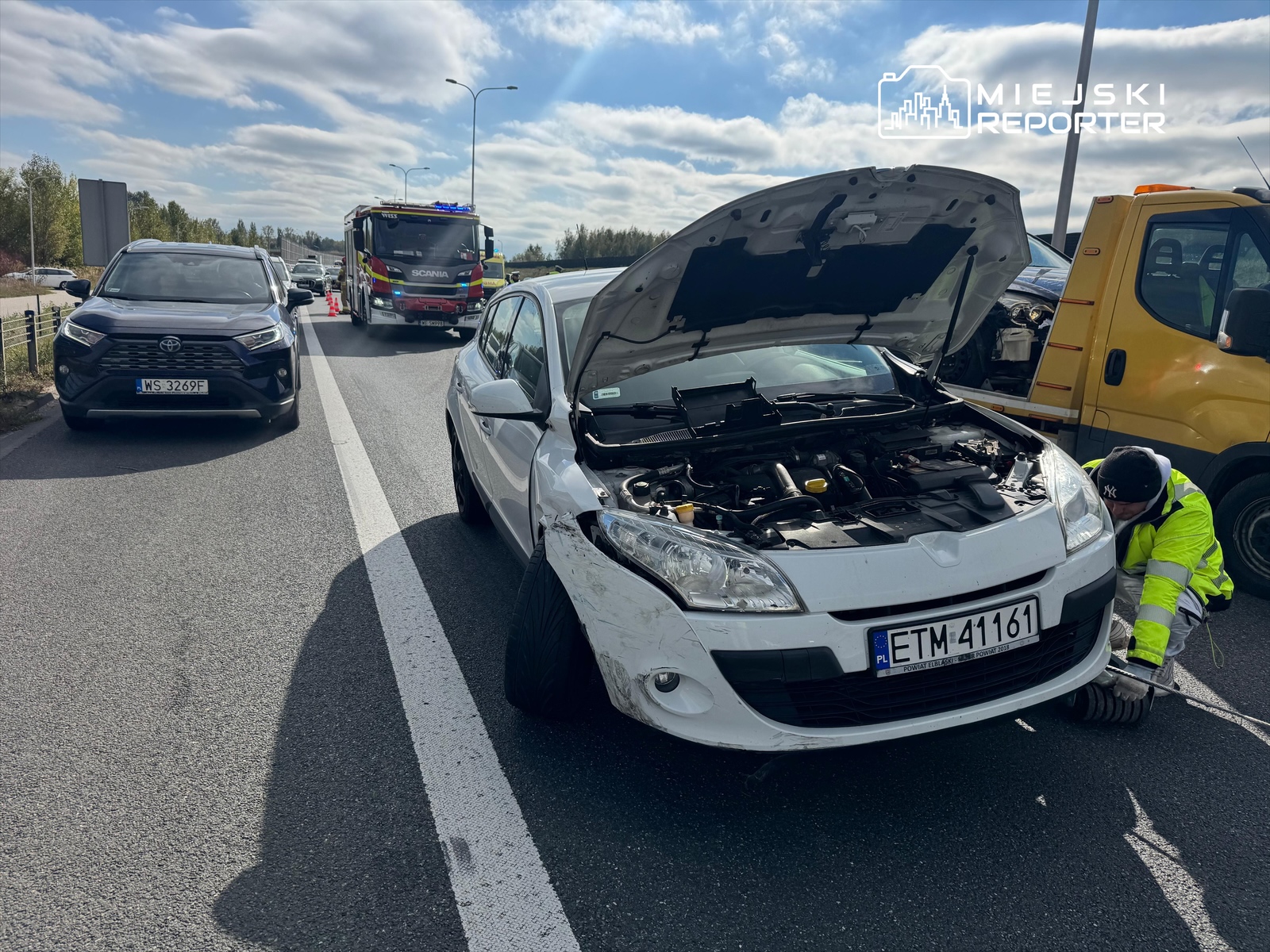Kolizja trzech aut na S2 sparaliżowała przed południem ruch na wysokości Palucha – kierowcy przejeżdżali tylko pasem awaryjnym. Policja wskazała winę kierującego renault; nikt nie został ranny, ruch wznowiono około 12:20.