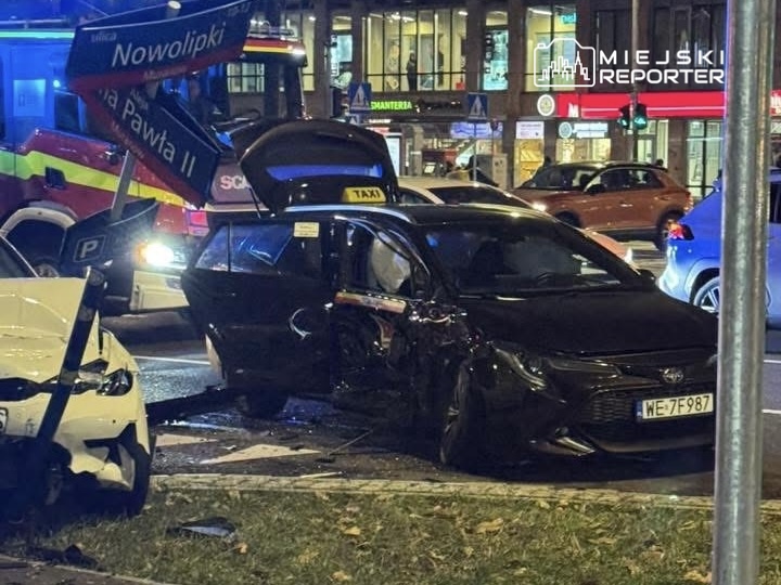 Dziś, we wtorek 2 grudnia, około godziny 17:30 na skrzyżowaniu alei Jana Pawła II z ulicą Nowolipki doszło do groźnego zderzenia osobowej toyoty corolli wykonującej przewóz osób zamawiany przez aplikację z osobowym BMW. W wyniku zdarzenia poszkodowany został pasażer toyoty, którego załoga pogotowia ratunkowego przewiozła do szpitala.