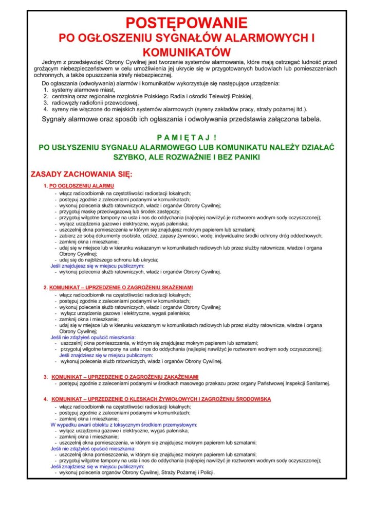 Zgodnie z komunikatem, ćwiczenia obejmą sprawdzenie działania systemu alarmowania oraz obowiązujących procedur. Syreny będą uruchamiane w wyznaczonych godzinach, a emitowany przez nie dźwięk ma trwać jedną minutę. Testy mają charakter techniczno-organizacyjny i służą wyłącznie sprawdzeniu, czy system oraz przyjęte procedury zadziałają prawidłowo w razie potrzeby.