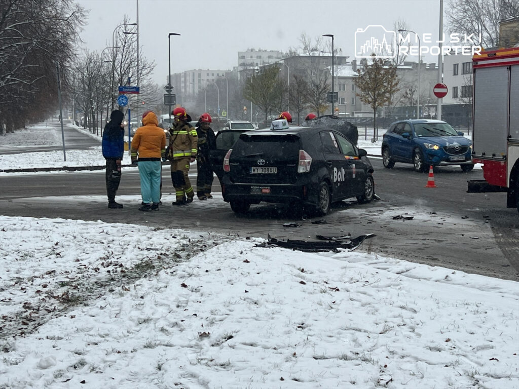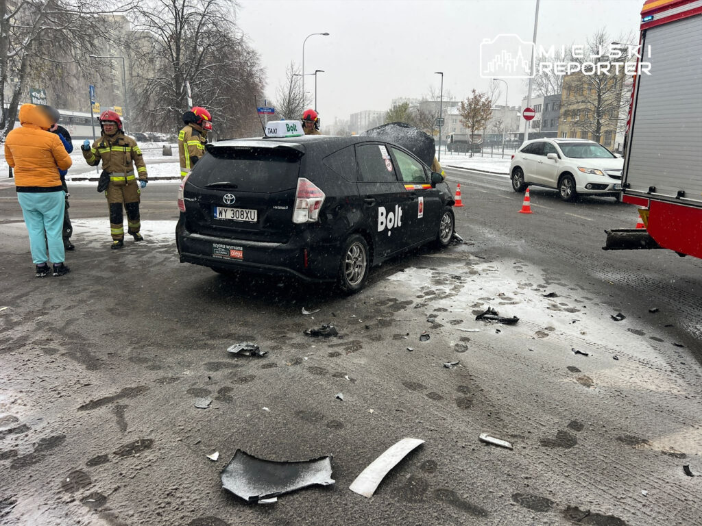 Dziś, 24 listopada, około godziny 13.05 na skrzyżowaniu ulic Syrokomli i Wysockiego w Warszawie doszło do poważnie wyglądającej kolizji z udziałem dwóch samochodów osobowych – Toyoty wykonującej przewóz osób za pośrednictwem aplikacji oraz volkswagena passata.