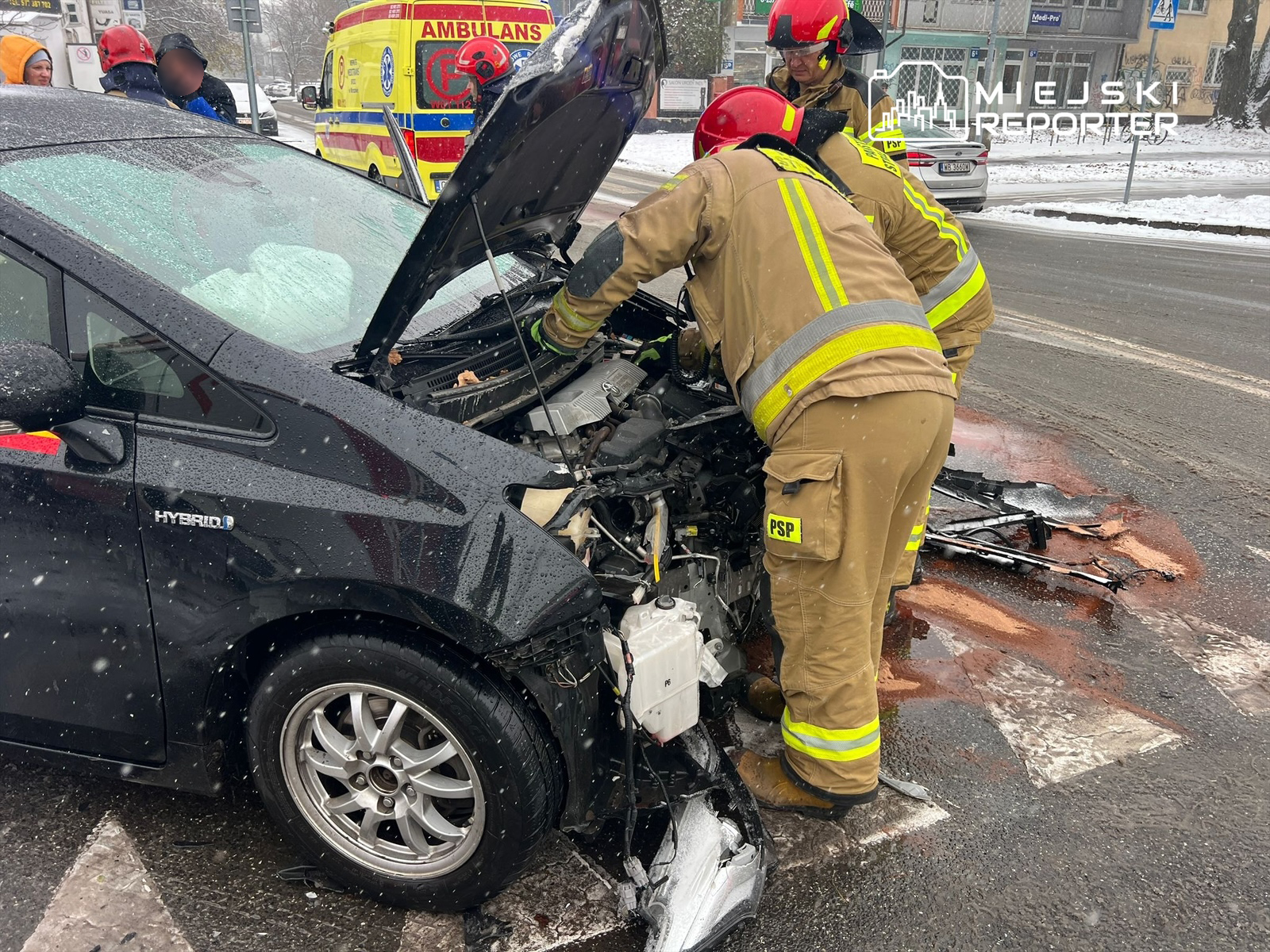 Ze wstępnych ustaleń wynika, że kierujący toyotą nie ustąpił pierwszeństwa przejazdu, doprowadzając do zderzenia obu pojazdów na skrzyżowaniu. Siła uderzenia była na tyle duża, że volkswagen passat wypadł z jezdni i zatrzymał się na pasie zieleni.