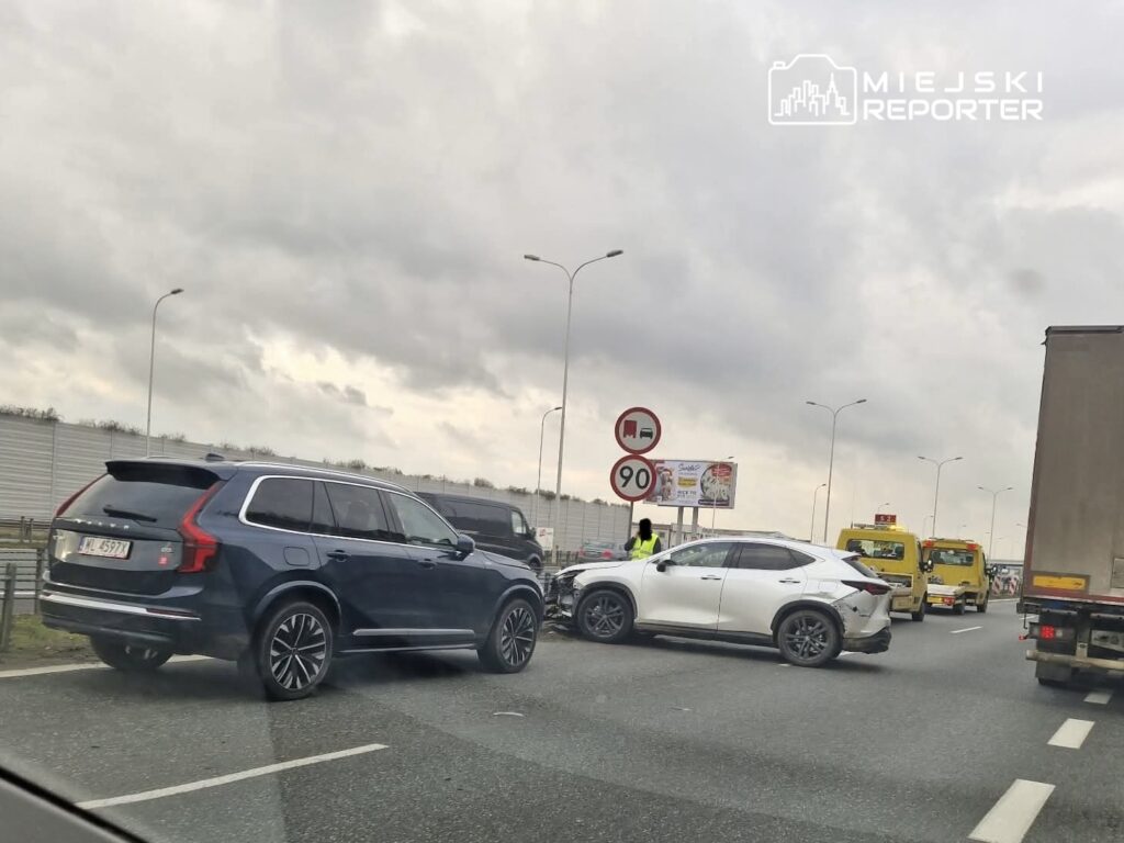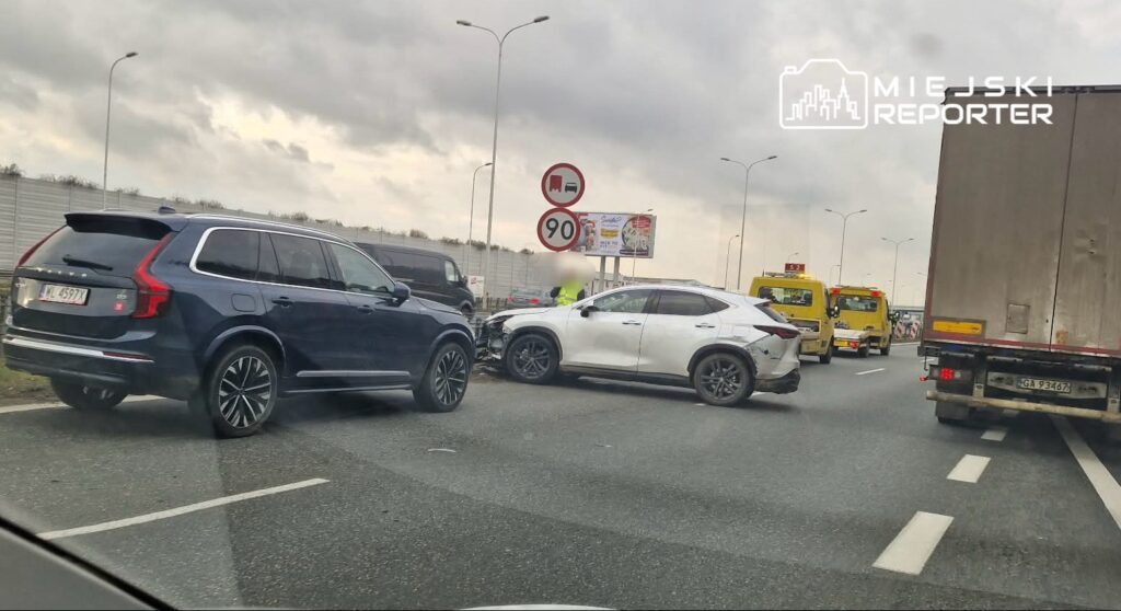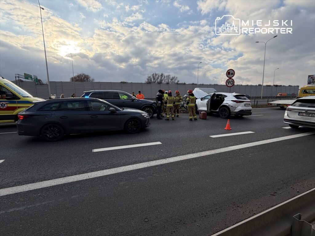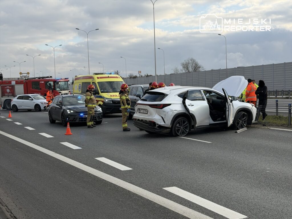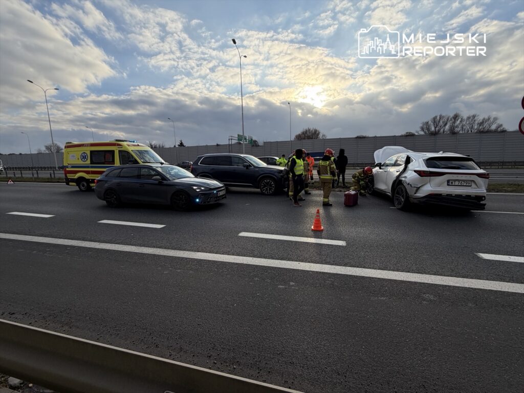Do zdarzenia doszło przed godziną 12:00 na jezdni w kierunku Konotopy. Na odcinku pomiędzy Aleją Krakowską a węzłem Opacz zderzyły się trzy pojazdy osobowe: ford ciągnący przyczepę, lexus oraz volvo. Po kolizji, lexus uderzył w barierki linowe biegnące wzdłuż lewego pasa trasy.