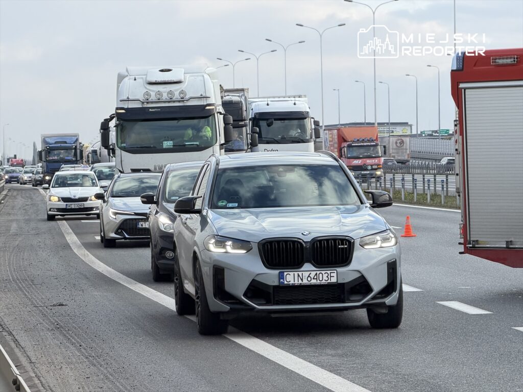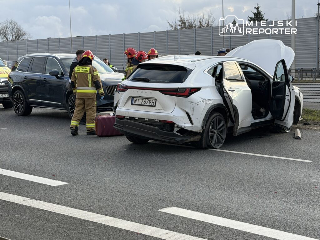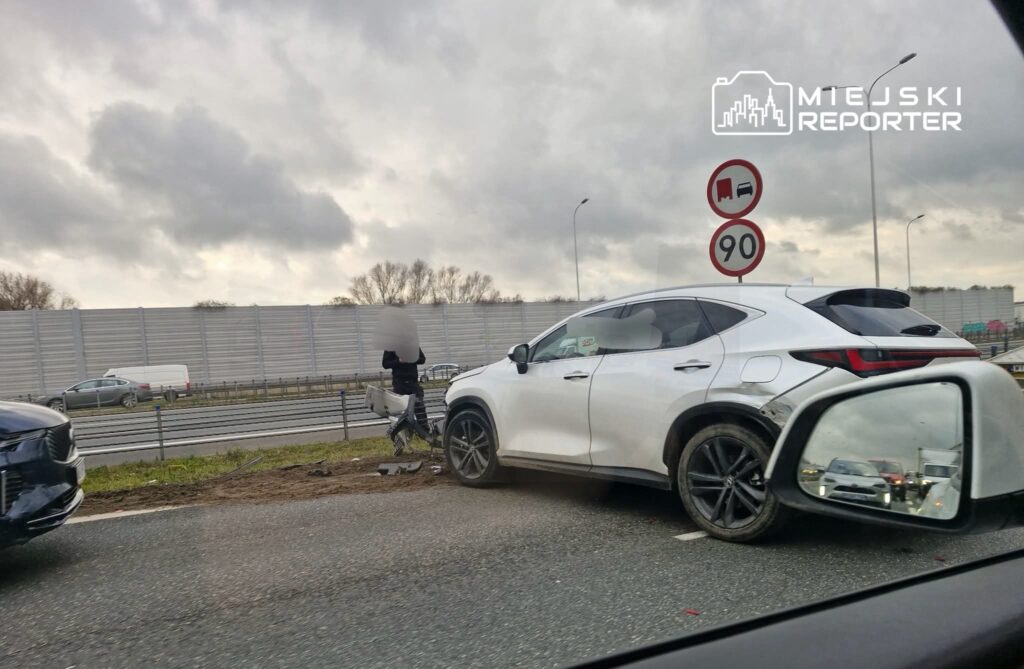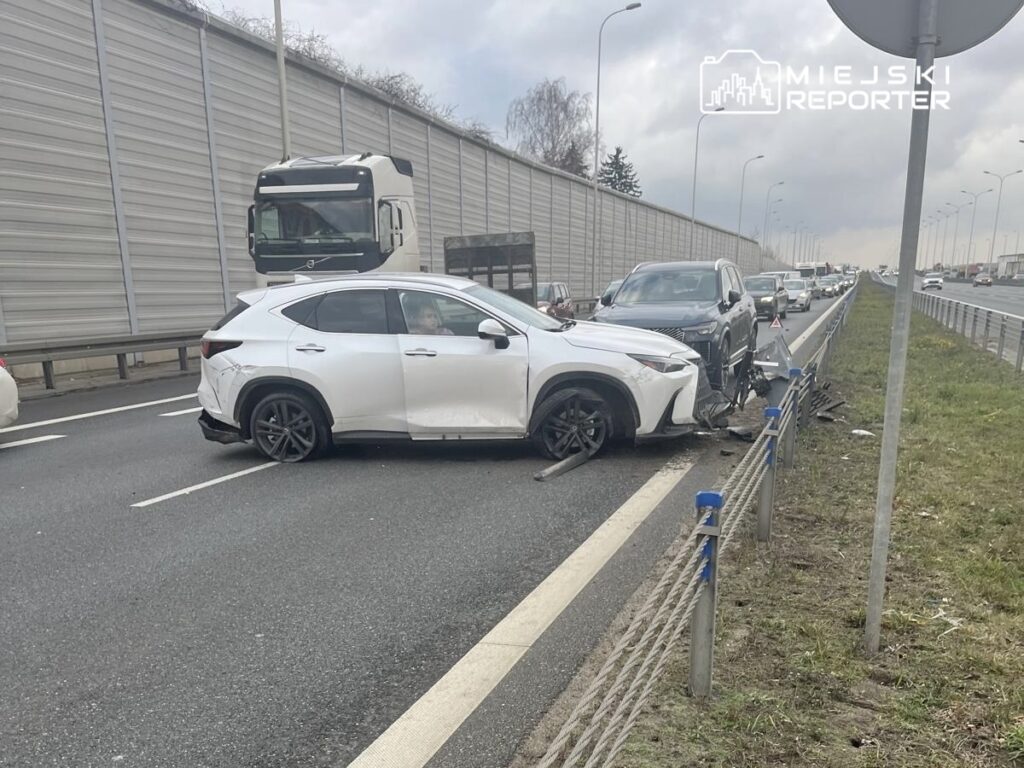 Do zdarzenia doszło przed godziną 12:00 na jezdni w kierunku Konotopy. Na odcinku pomiędzy Aleją Krakowską a węzłem Opacz zderzyły się trzy pojazdy osobowe: ford ciągnący przyczepę, lexus oraz volvo. Po kolizji, lexus uderzył w barierki linowe biegnące wzdłuż lewego pasa trasy.