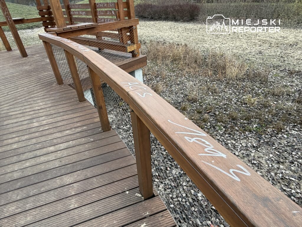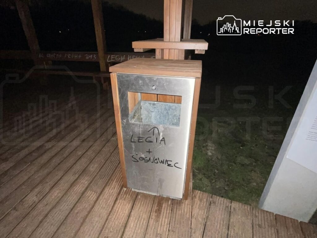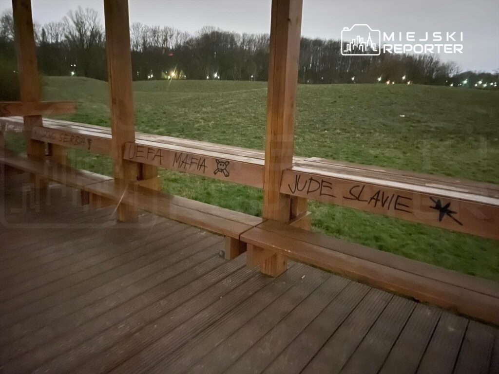 W sobotę 29 listopada przed południem nasz reporter pojawił się na miejscu i potwierdził wystąpienie dewastacji. Na elementach drewnianych Ogrodu Biocenotycznego widoczne były świeże, kontrastujące z otoczeniem napisy – zarówno wulgarne sformułowania, jak i jednoznaczne oznaczenia środowiska kibicowskiego gości. Zniszczenia obejmują znaczną część drewnianej infrastruktury w tej części parku. Po udokumentowaniu zdarzenia redakcja przekazała informację o konieczności pilnej interwencji odpowiednim miejskim służbom odpowiedzialnym za utrzymanie terenów zieleni.